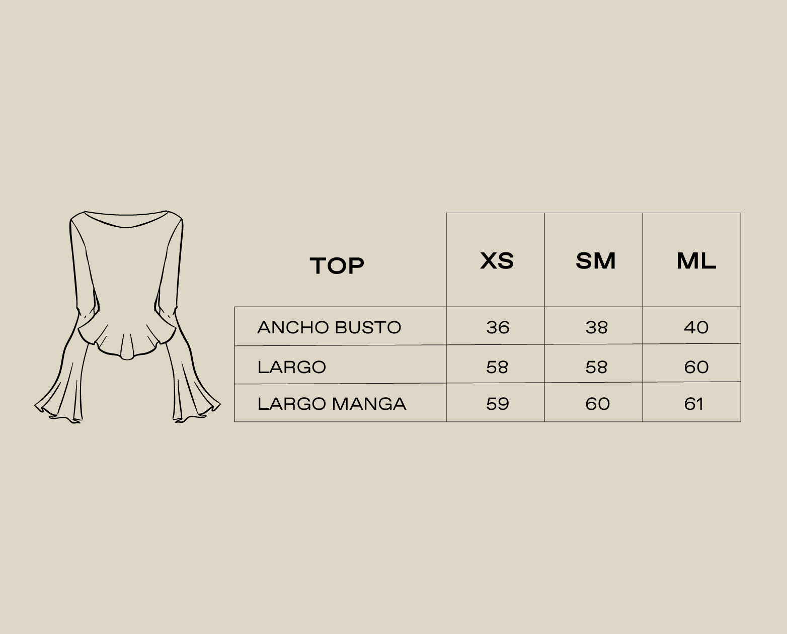 Top de diseño sofisticado que combina estilo y feminidad. Presenta mangas largas y una línea de botones frontales, mientras que el peplum en la parte inferior aporta volumen sutil y define la cintura. Su acabado acanalado añade textura y detalle, creando un look contemporáneo y favorecedor.